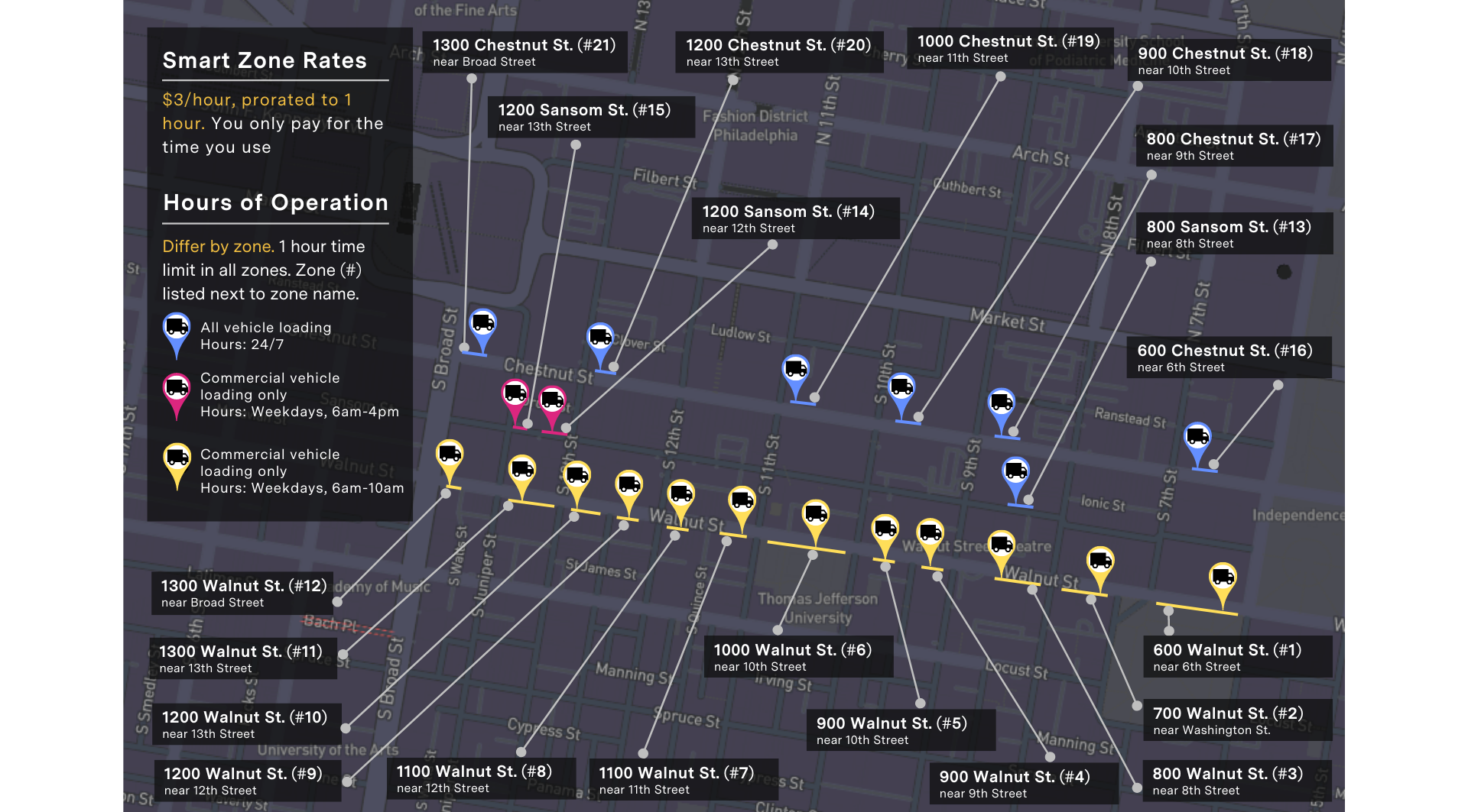 - “Overall, the project aims to identify how loading zones play into the larger picture of Philadelphia’s traffic and streets usage,” Deputy Managing Director for Transportation, Infrastructure, and Sustainability Mike Carroll said when the project was announced.